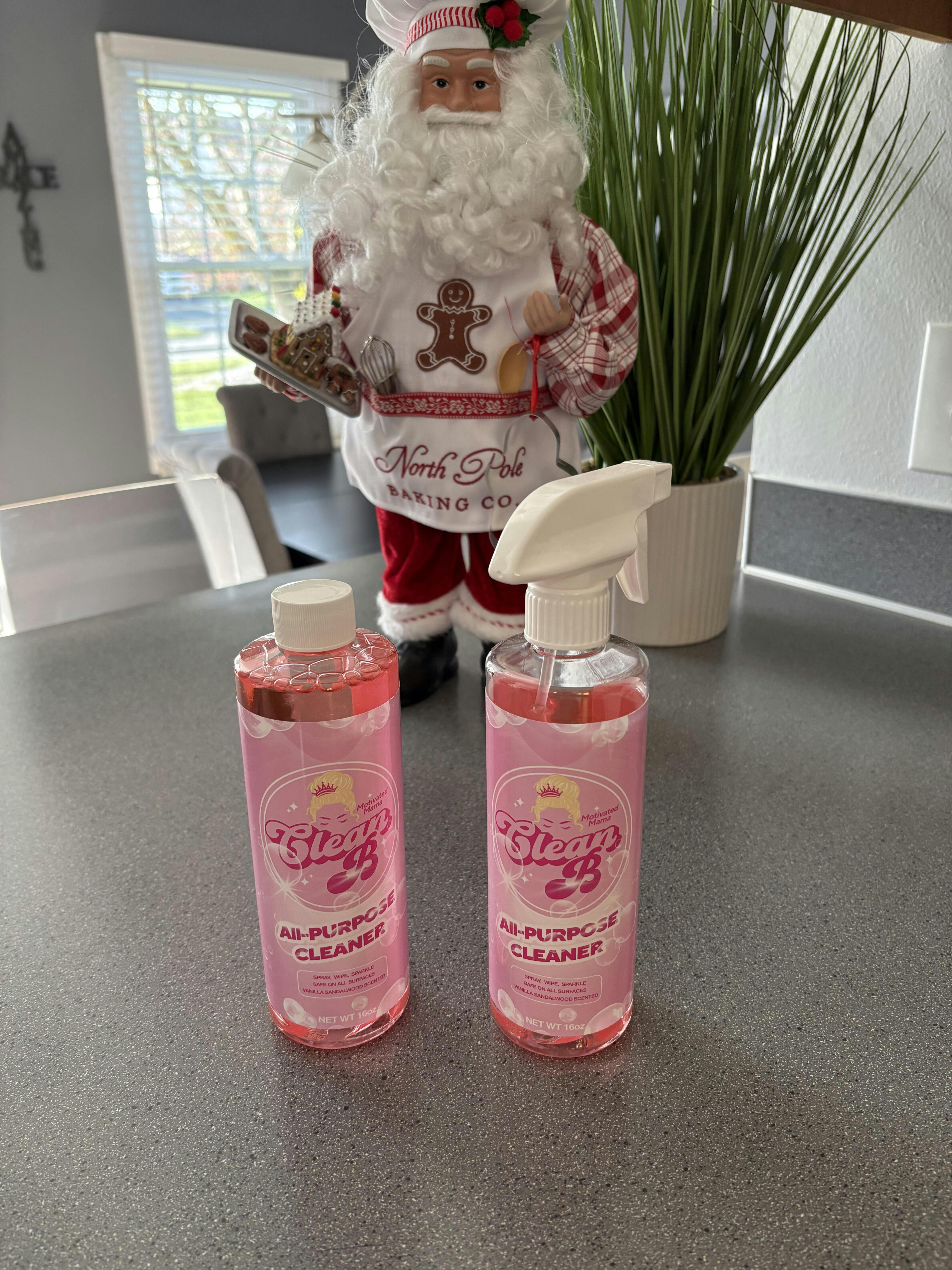 1 Gallon jug and 1 16oz bottle of CLEAN B ALL-PURPOSE CLEANER (APC) Spray. Wipe. SPARKLE. Let’s get cleaning but with more fun and less work because Clean B APC does most of the work. Be sure to test in an inconspicuous place first before going hog wild. Clean B APC can be used throughout the interior of your home to tackle any mess your kids, husband or you made yourself. Why does cleaning have to be boring b****? Let’s make it a little more fun with some pink and the smell of vanilla sandalwood! Now get cleaning with an energy drink, turn up the jams and have the best day with a clean home!